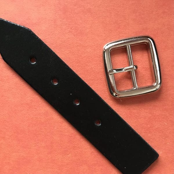 4.5″ long (before point begins) 4 hole punched leather 1″ strap